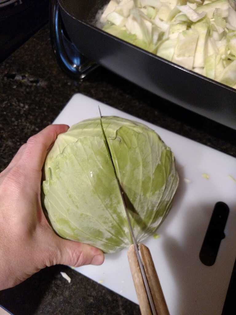 cutting a cabbage in half
