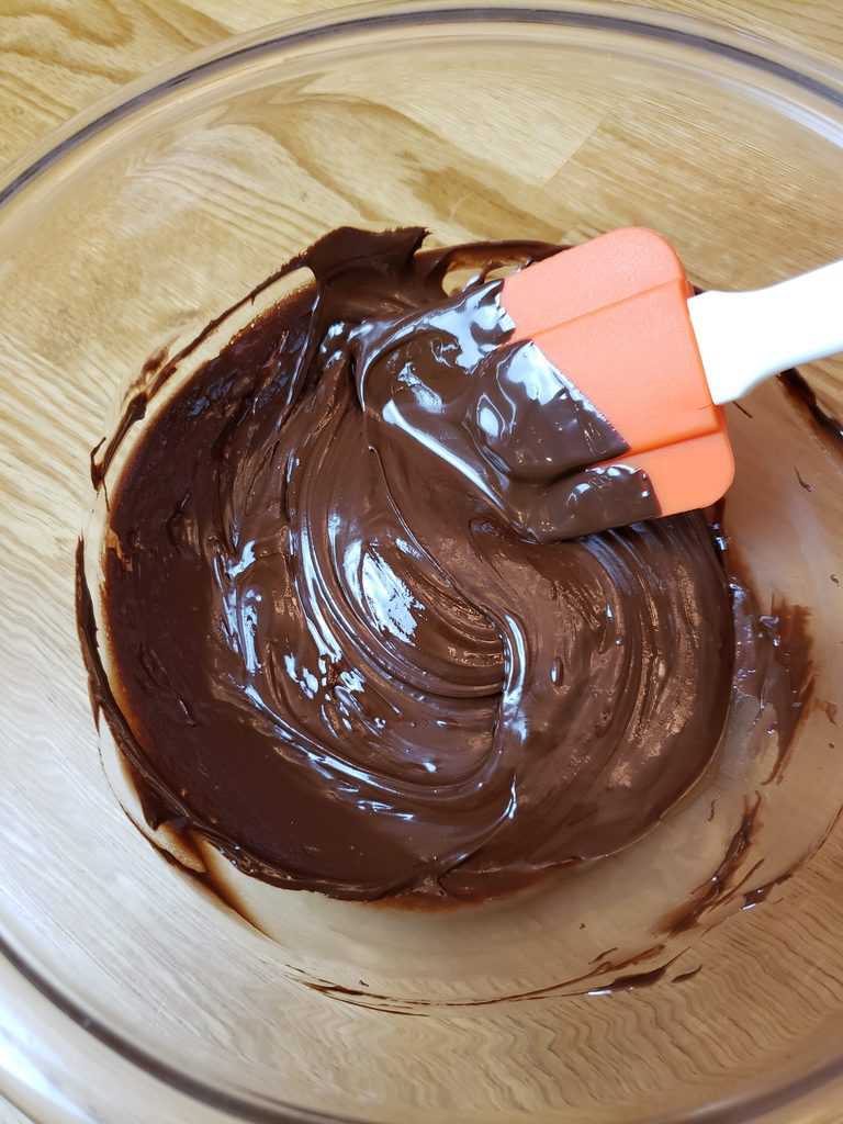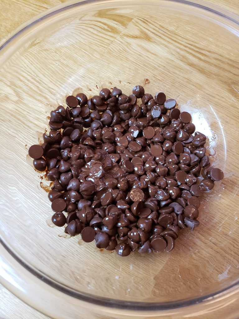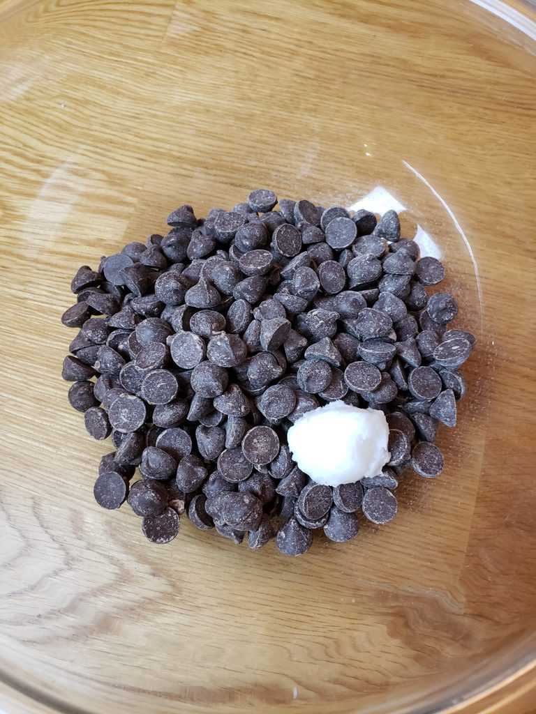 - Melt chocolate chips and coconut oil in microwave for 30