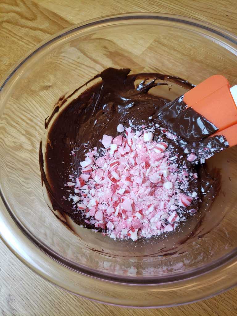 them with the side of a hammer. It doesn’t take a whole lot of banging or you will have a mess! - Stir in the peppermint extract and about 2/3 of the crushed