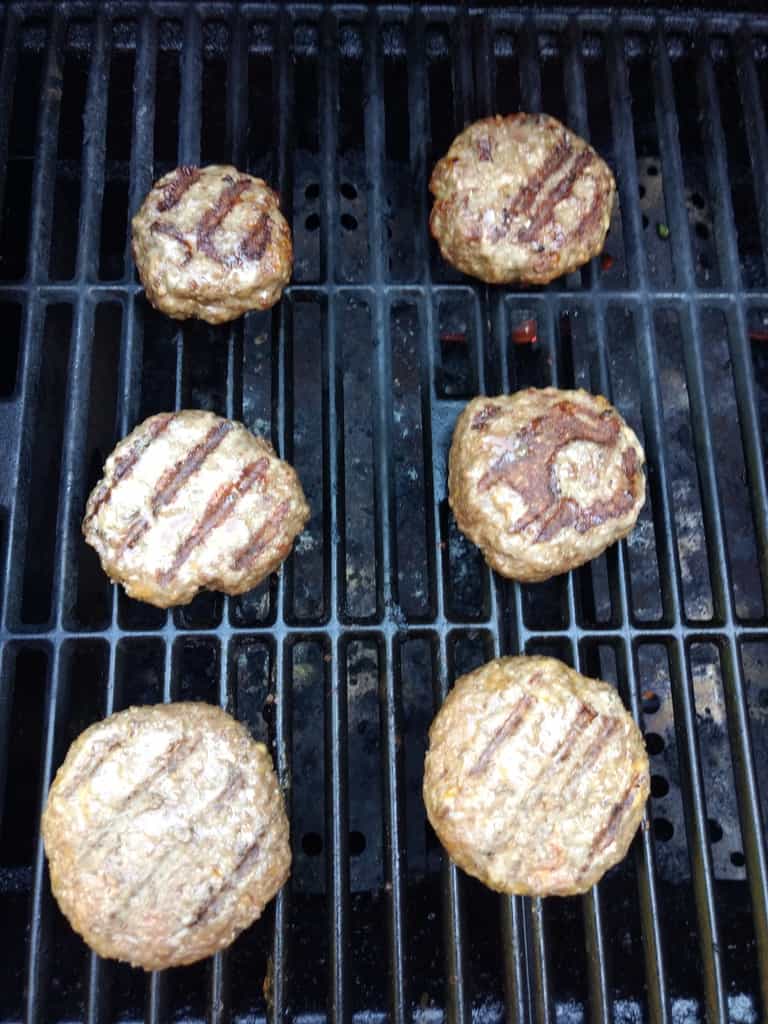 Grill over medium high heat for 5-7 minutes on each side, flipping once. They can also be cooked in a skillet on medium high heat for 5-7 minutes on each side flipping once.